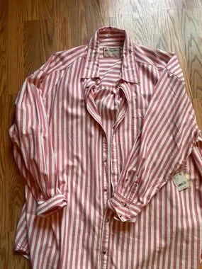 NWT oversized We The Free casual top with bold pink and white stripes. Soft lightweight knit. Easy everyday style.