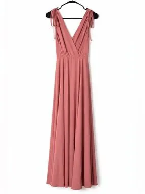 Lulu’s Dusty Rose Tie Shoulder Maxi Dress Formal Bridesmaid Deep V Gown M