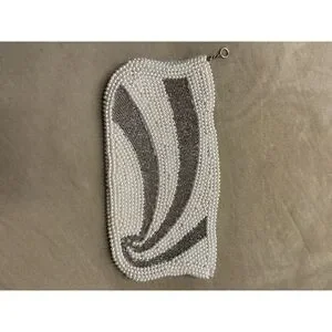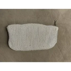 Elevate your evening ensemble with this exquisite antique hand-beaded pearl evening bag. A true testament to timeless elegance, this clutch boasts a sophisticated off-white hue, complemented by intricate beaded accents that exude a sense of classic charm. A smooth zipper closure ensures your valuables stay secure while adding a sleek finish to this piece.