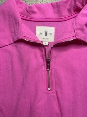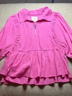 Umgee Hot Pink Ruffle Zip Peplum style shirt Top medium