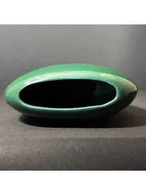 Vintage Green Ceramic Vase Glossy Finish Asymmetrical Oval Shape Modern Design