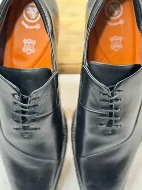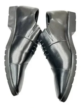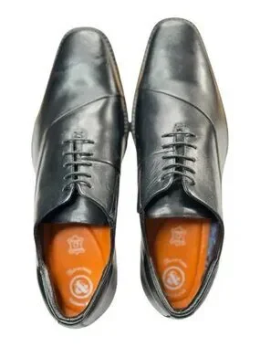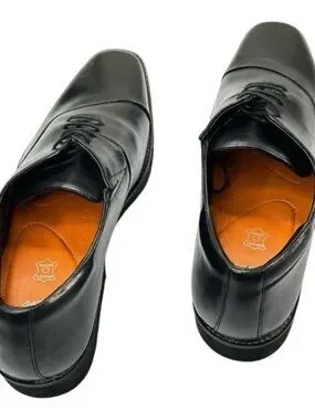 These pre-owned Oxfords are in excellent condition, with only minor scuff marks and some minor wrinkles in the leather. Upgrade your formal wardrobe with these sleek black shoes, crafted from genuine leather and featuring True Comfort Foam™ insoles for both a polished look and all-day comfort. The round toe and stitched cap detail add a modern, elevated touch, making them perfect for weddings, work, or any special occasion.