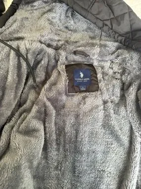 U.S. Polo Assn Quilted Jacket Men L Fleece Lined Hooded Coat Black Winter Casual