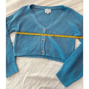 PINK ROSE Blue Cropped Cardigan Sweater women L