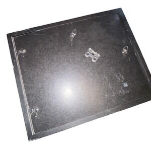 11x11 Set of four assorted picture frames includes three matching black beveled frames with white matting and one decorative dark wood-tone frame with ornate detailing. The black frames feature a deep profile design that adds dimension to any wall display, while the fourth frame offers a classic traditional look. All frames are equipped with hanging hardware on the back for easy installation. These frames show visible signs of wear including surface scratches and dust, making them ideal for a DIY project or a casual gallery wall.