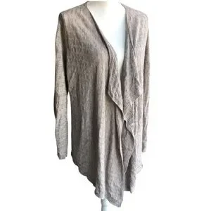 Eileen Fisher Waterfall Cardigan Linen Neutral Large