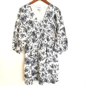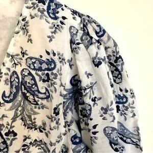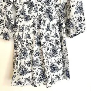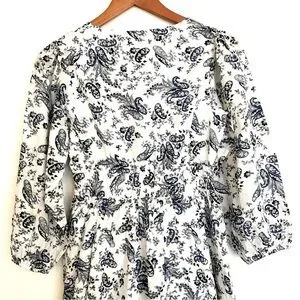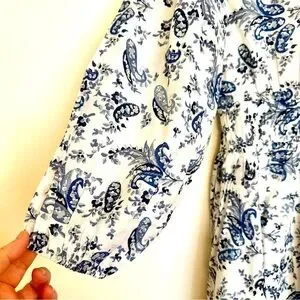 Lucky Brand blue and white floral dress. Elastic waist. V-Neck. Long sleeves. Puffed sleeves.