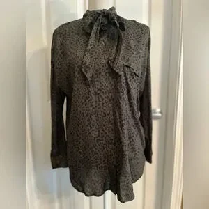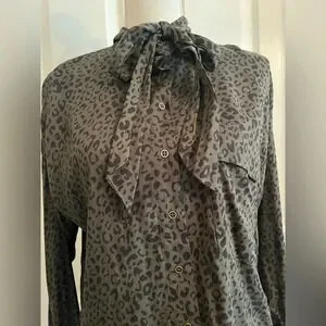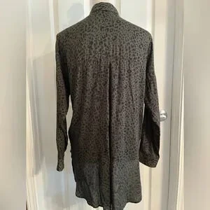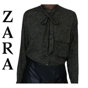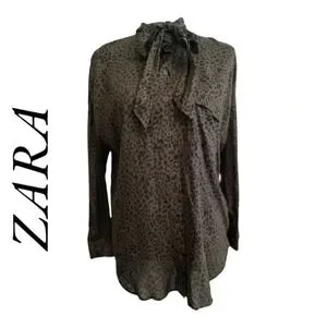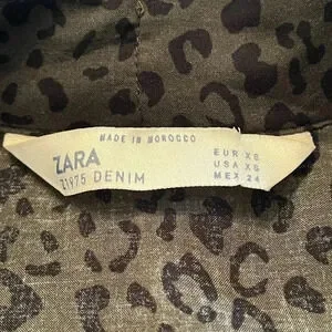 Zara animal leopard print khaki button down shirt size XS