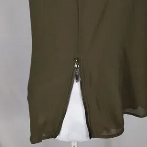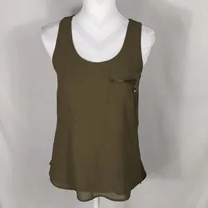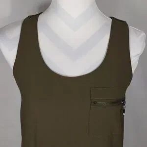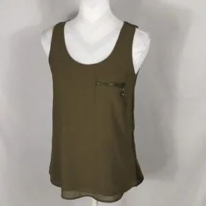 This green My Michelle zippered tank top is a size Small with a pit to pit measuring 17-1/2". It has a zippered front left chest pocket and a 6" zipper on each side of top. 100% polyester and machine washable. Pre-owned and in excellent condition. All offers welcome.
