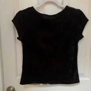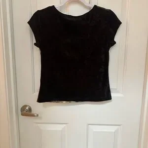 Very special vintage black short sleeve women's tee featuring a fairy art print on the front. Soft, velvet like fabric with a classic crew neckline. The black color and detailed illustration create a unique, artistic look perfect for casual outfits.