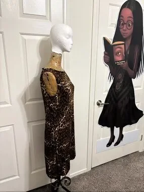 No Boundaries leopard shimmery dress large has stretch vintage Y2K boho chic