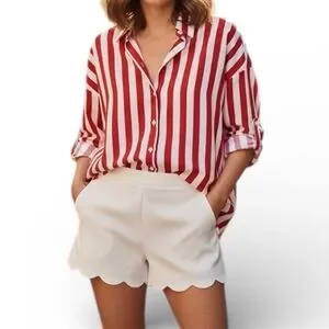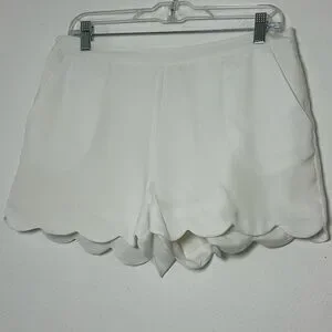 Chic white shorts with a scalloped edge. High waist for a stylish fit. Ideal for versatile styling. PLEASE NOTE : No size tag attached base on measurement is size Medium