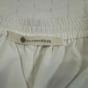 The Impeccable Pig White Scalloped High Waist Shorts With Elastic on Waist