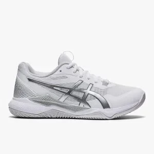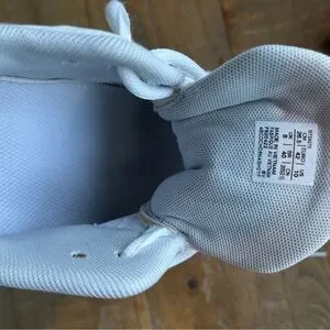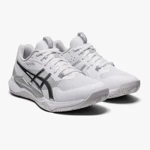 Step into comfort and performance with Asics athletic shoes, featuring a sleek white and gray design. The breathable mesh upper ensures optimal airflow, while the supportive sole provides stability for all your athletic endeavors. Used for 1 season of volleyball. Only worn inside gym.