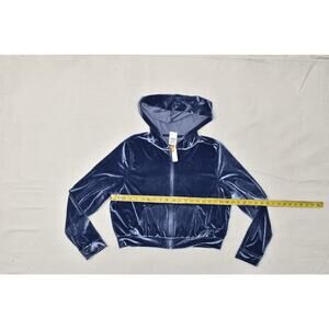 NEW Victoria's Secret PINK Velour Cropped Zip Up Hoodie Navy Blue Rhinestone L