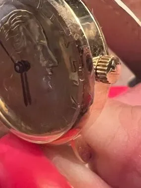 Elegant and unique Vicence Italy coin dial wristwatch featuring a striking Italian lira coin-style face encased in a 14KT gold Milor case. This vintage-inspired timepiece blends fine Italian craftsmanship with a bold statement design.