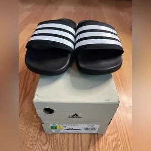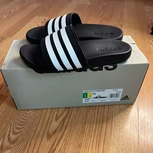 Adidas Adilette Comfort Slides Black/White Mens 5/Women's 6 NIB