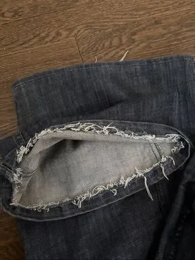 Excellent used condition with no known flaws. Excellent pre-owned condition with no major flaws. The hems feature an intentionally raw/unfinished inner edge (see photos), which are part of the original design and adds to the modern, lived-in look.