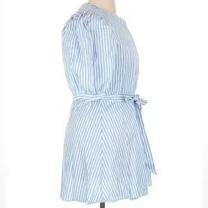 Zara ZW Collection Blue Striped Poplin Mini Dress Puff Sleeve Cotton XL NWT