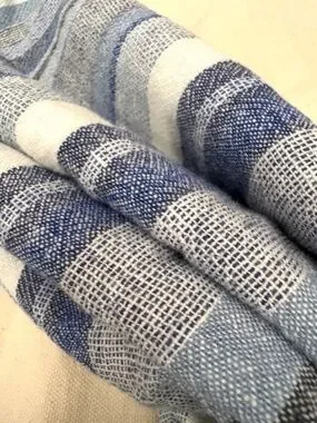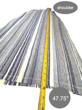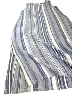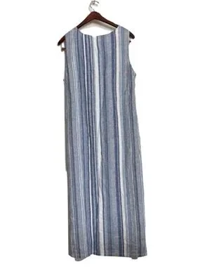 A blue and white striped linen sleeveless dress