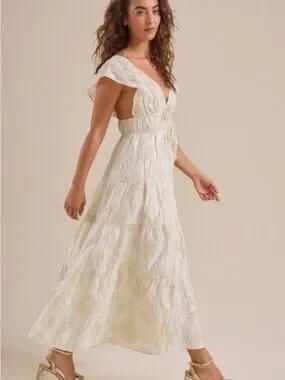 Altar'd State Cream V-Neck Tiered Maxi Dress