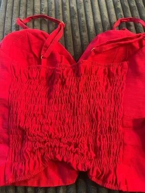 ✨ Stunning Brazilian Red Two-Piece Set - Elegant Gold Details ✨