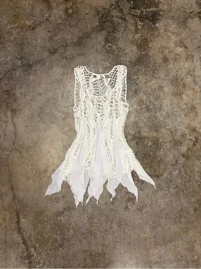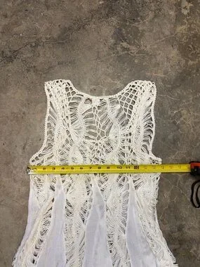 Vintage White Crochet Lace Fairycore Tunic Cover Up Boho Festival S/M
