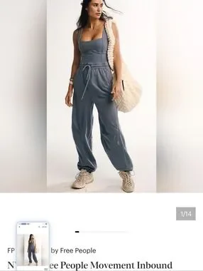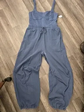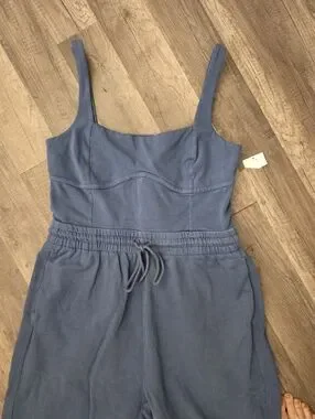 FREE PEOPLE MOVEMENT onesie Slate Blue Jumpsuit with Drawstring Boho Yoga