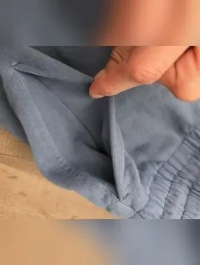 Comfortable slate blue jumpsuit with a drawstring waist for a customizable fit. Soft, casual fabric with wide straps and a square neckline. Relaxed leg and elastic cuffs for an easy, on-the-go look. Versatile piece you can dress up or down.