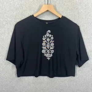 Free People FP Movement Crop Top Womens XS Black Graphic Activewear EUC