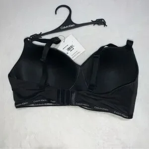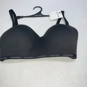 Calvin Klein Wirefree Bra Women Large Black NEW Lightly Lined Logo QP3301O-001