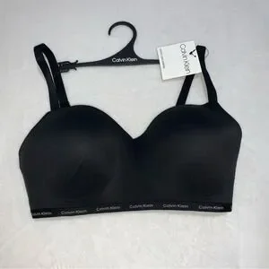 Calvin Klein lightly lined wirefree bra provides seamless comfort and support for everyday wear. This black bralette features a smooth, molded cup design and an elasticized underband with the iconic repeating logo. Adjustable straps and a hook-and-eye back closure ensure a personalized fit, while the soft, stretchy fabric offers a sleek look under clothing.
