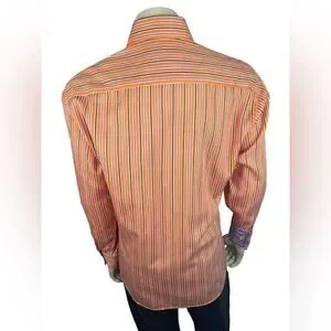 Striking Bertigo Tangerine/Hot Pink/Purple Striped L/S Dress Shirt NWOT Sz 5(XL)