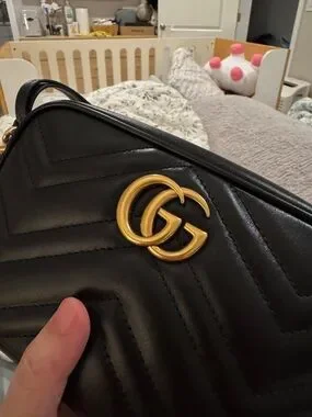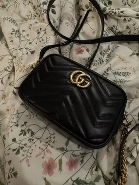 Gucci Black Quilted GG Marmont Crossbody with Gold Hardware