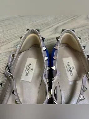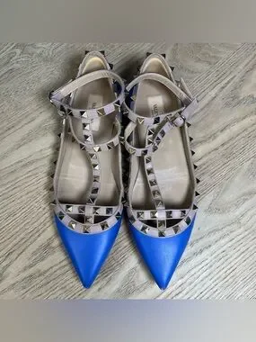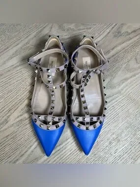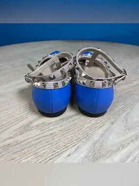 Valentino Garavani Rockstud Blue Leather Studded Ballet Flats Size 38.5