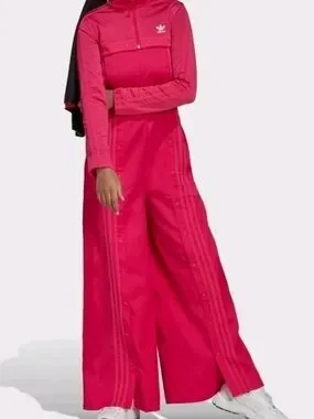 XL ADIDAS Vibrant hot pink wide-leg track pants by adidas. Snap-front panels open for added movement. High-rise waistband with sporty seam detailing. Lightweight athletic fabric for casual wear. Great for bold athleisure outfits. DRESS it up with heels or down with sneakers