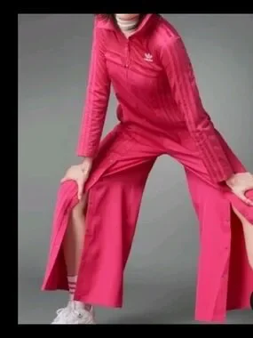 XL Adidas Hot Pink Wide-Leg Snap-Front Track Pants Jacket
