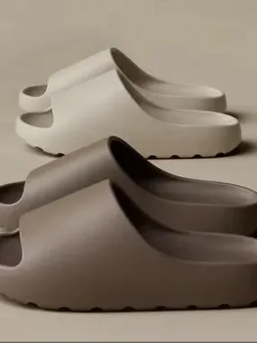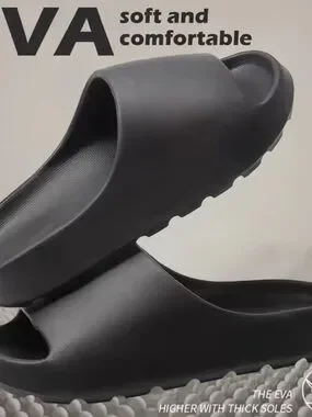 Slip-on slide sandal with a smooth matte upper. Thick cushioned sole with textured tread. Lightweight and easy to wear. Clean, modern look in solid black.