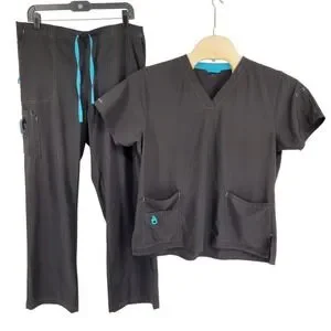 Carhartt Scrub Set Womens XL Black Force Cross-Flex V-Neck Cargo C12110 C52110