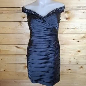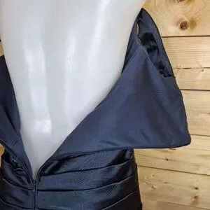 Adrianna Papell Evening Off Shoulder Navy Cocktail Wedding Bridesmaid Dress