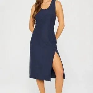 Fabletics Navy Tank Midi Dress with Side Slit