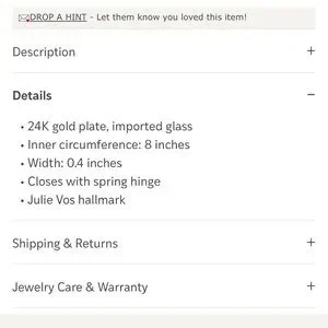 Our jewelry is hand set in 24k gold plate over nickel-free brass and sealed to prevent tarnish.
