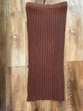 FP BEACH Free People Ribbed Knit Midi Skirt in Chestnut Brown Rust festival S