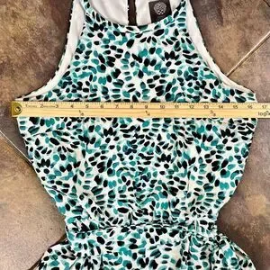 Vince Camuto Sleeveless High Neck Tie Waist Capri Jumpsuit 4. Measurements in photos. In good, pre-loved (used) condition.