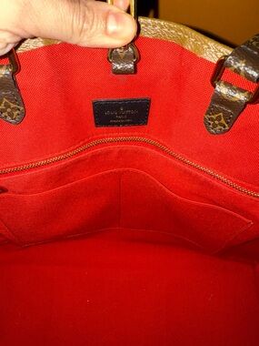 Pre Loved, Good Condition. Spacious Louis Vuitton tote in tan monogram canvas. Dark brown leather trim and handles. Gold-tone hardware accents. Elegant everyday carry with signature LV pattern. Includes red insert/organizer and dust bag / LV gift bag.