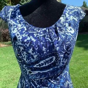 Beautiful blue paisley dress with lots of designer features.