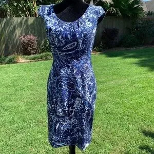 ADRIANNA PAPELL Blue Paisley print scoop neck cap sleeve cotton bodycon sheath dress