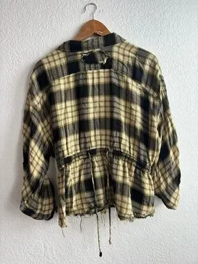 We The Free Yellow and Black Plaid Pacific Drawn Top Medium