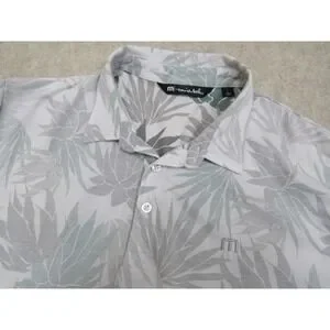 Travis Mathew Mens Gray Green Tropical Leaf Golf Polo Shirt 1MW520 Size L