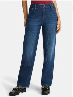 These Time and Tru High-Rise Straight Jeans with Carpenter Details combine classic style with a modern twist, featuring a high-rise fit. These jeans offer a flattering silhouette for all-day comfort with carpenter-inspired details like a front-panel design for a unique, on-trend update to traditional straight-leg denim. They can easily be dressed up or down for any occasion, whether you're running errands or out for a casual outing, these jeans are the perfect blend of style and function.